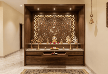 Custom pooja spaces blending tradition with modern luxury for your sacred moments.